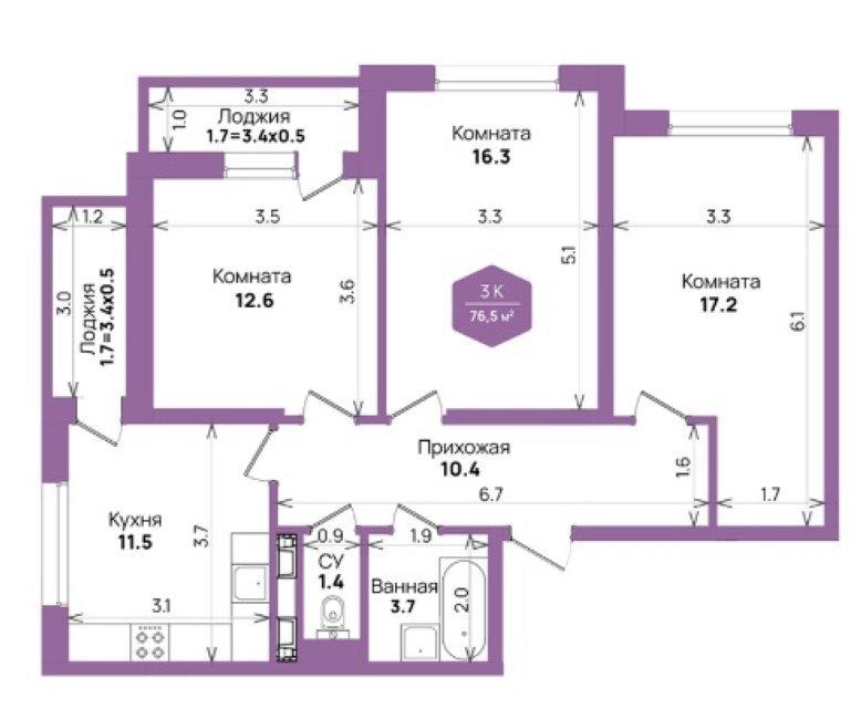 | Площадь, кв.м. | 76.5 |