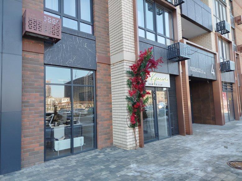 На первых этажах дома витражное остекление там коммерческие помещения разной направленности: магазины, студии фитнеса, салон красоты, аптеки, кафе много другое.