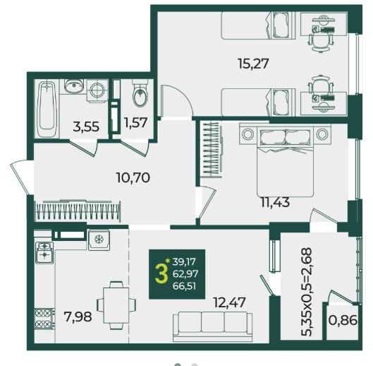 | Площадь, кв.м. | 66.51 |