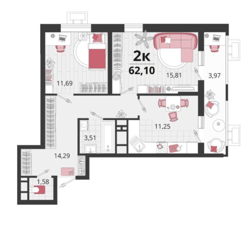 Продается 2-х комн. новостройка, 62 кв.м., 12/24 эт