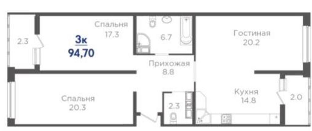 Продается 3-х комн. новостройка, 95 кв.м., 11/25 эт