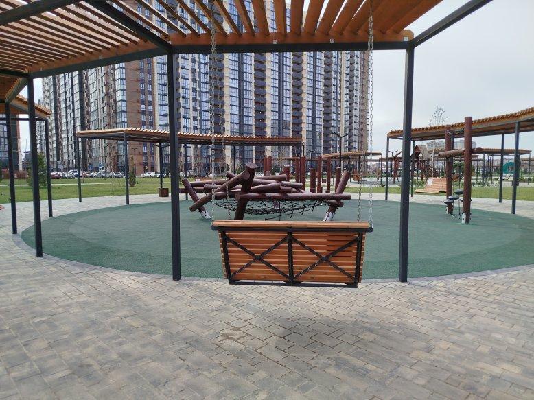 Для отдыха и спорта детские городки, летний кинотеатр, плоский фонтан, арт-объекты (арт- локация для фото), памп-трек, зона барбекю с мангалами и беседками, прогулочные зоны, территория с качелями, шезлонгами, гамаками.