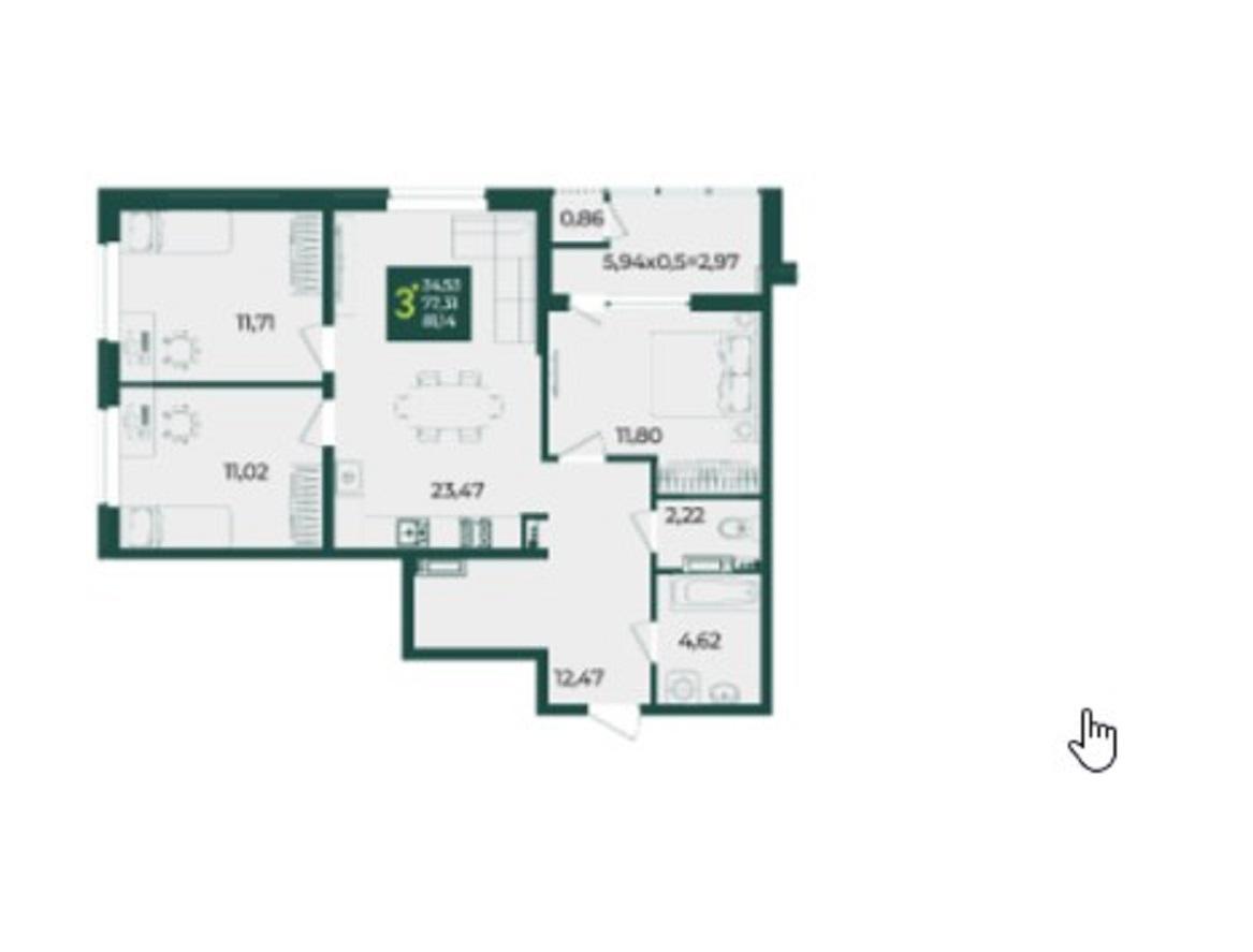 Продается 3-х комн. новостройка, 81.61 кв.м., 18/18 эт