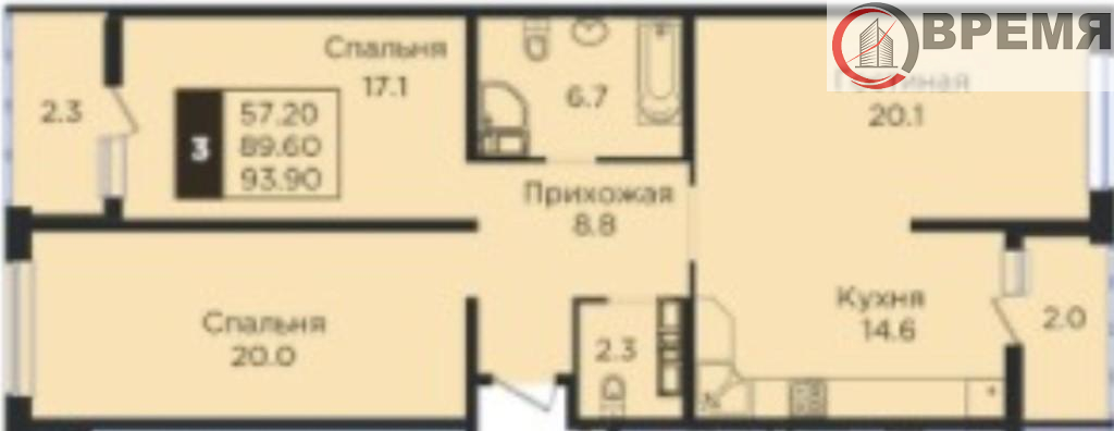 Продается 3-х комн. новостройка, 95 кв.м., 3/25 эт