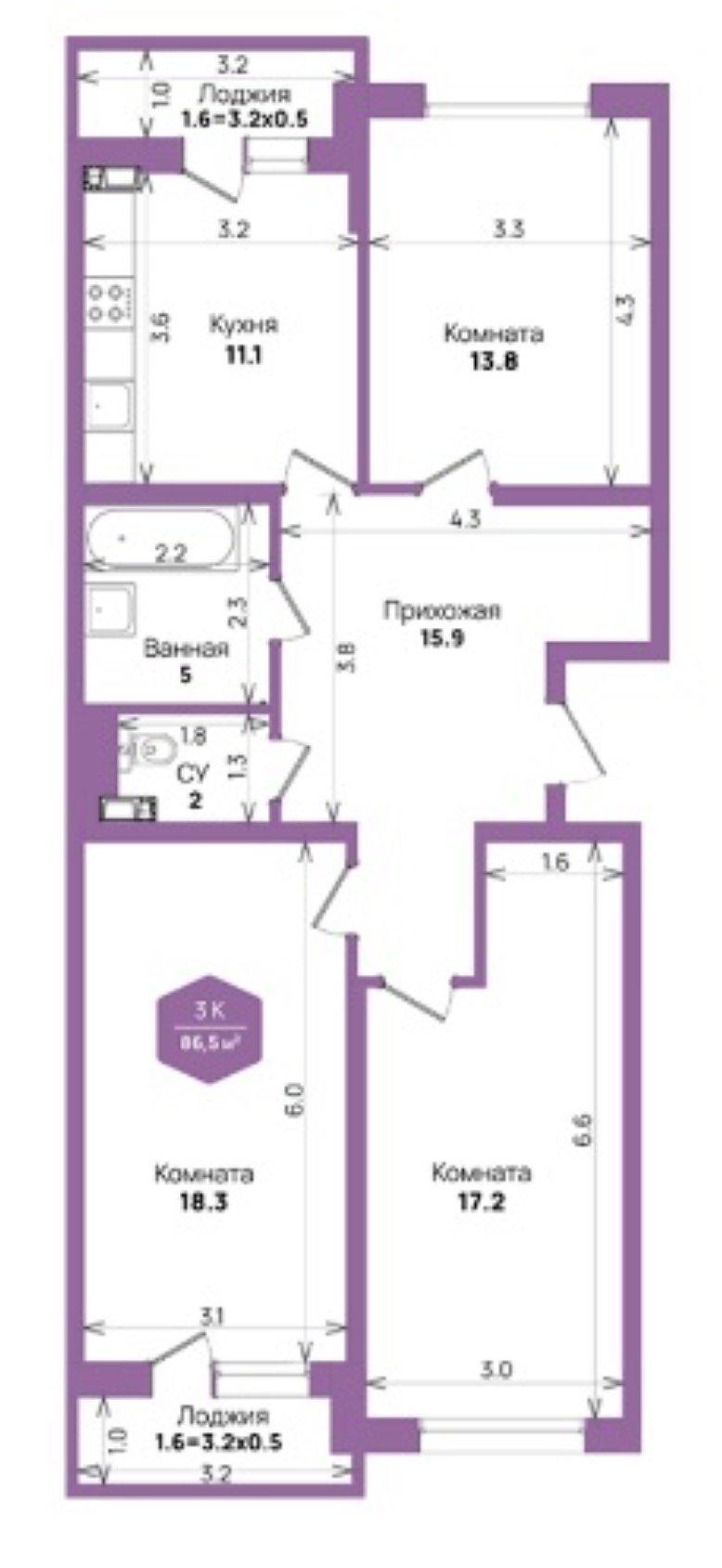 Продается 3-х комн. новостройка, 86.5 кв.м., 3/21 эт