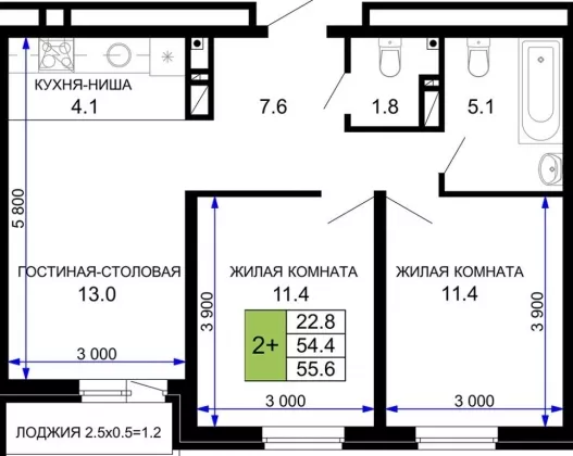 Продается 3-х комн. новостройка, 55.2 кв.м., 15/16 эт