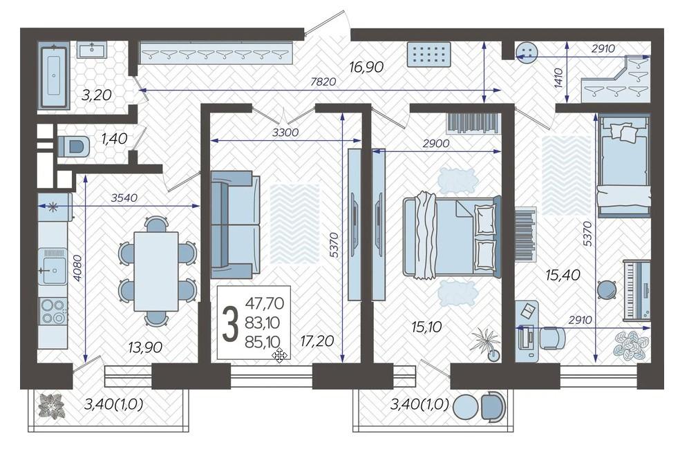 Продается 3-х комн. новостройка, 85.1 кв.м., 1/12 эт