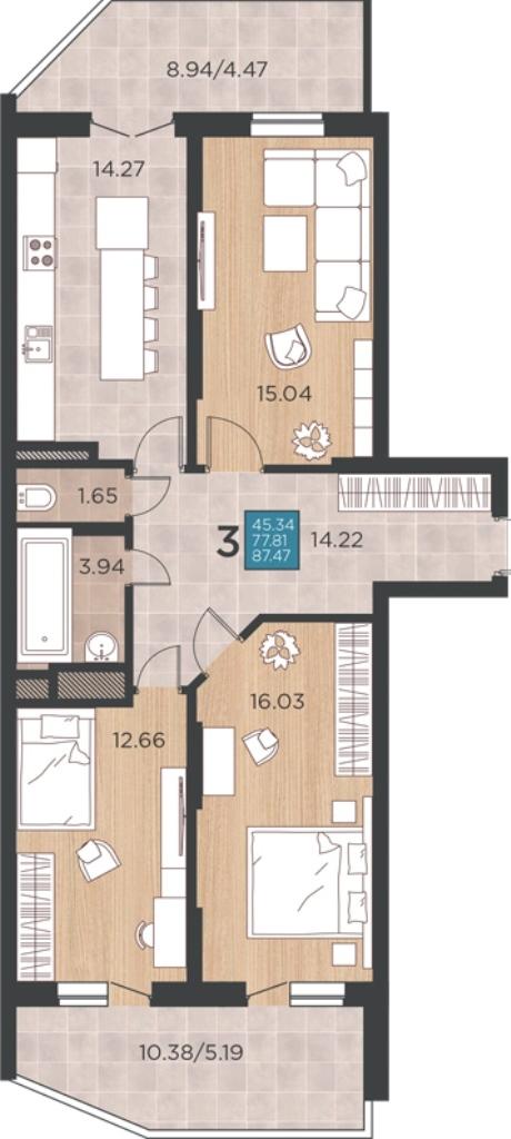 Трёхкомнатная квартира на две стороны, две остеклённые лоджии в монолитном доме с вентилируемыми фасадами. В квартире шикарная прихожая в ней место под шкаф, просторная кухня , светлые комнаты, из комнаты и кухни выход на большие остеклённые лоджии, раздельный сан узел. В квартиру заведено электричество, канализация, установлены радиаторы отопления, МПО, качественная металлическая дверь.