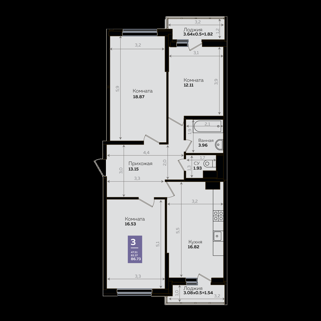 Продается 3-х комн. новостройка, 86.73 кв.м., 11/24 эт