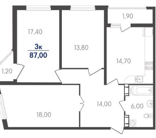 Продается 3-х комн. новостройка, 87 кв.м., 15/24 эт