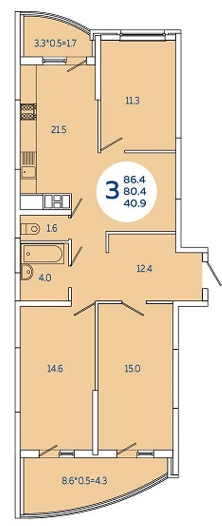 Продается 3-х комн. новостройка, 87 кв.м., 10/20 эт