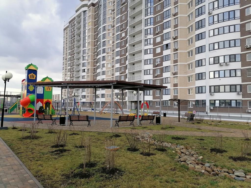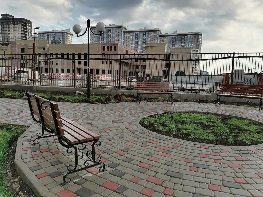 Рядом с домом строятся большие торговые центры с огромными парковками, для прогулок зеленый бульвар и фонтан. Рядом с бульваром заканчивают строительство Храма.