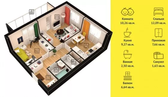 Двухкомнатная квартира с широким ленточным балконом, прекрасная планировка квартиры. Светлые уютные комнаты, раздельный санузел, просторная прихожая с местом под гардероб!!! В квартире установлены счётчики тепла, воды и электричества, что позволяет сэкономить на ЖКУ в тёплом климате.