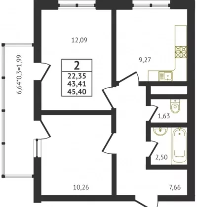 Продается 2-х комн. новостройка, 45.4 кв.м., 2/17 эт