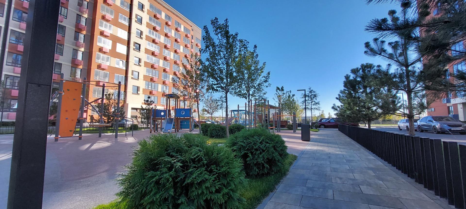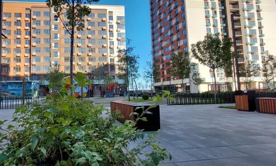 Однокомнатная квартира в новом самодостаточном микрорайоне. Дизайнерские входные группы, сквозной подъезд, скоростной лифт, ухоженная придомовая территория.
