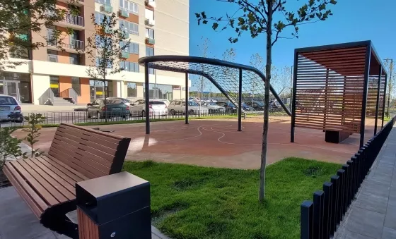 На территории комплекса расположены поликлиника, фитнес-центр, спортивные площадки, зеленые аллеи, магазины, салоны красоты. Также в микрорайоне есть физкультурно оздоровительный центр, открытый бассейн, огромный красивый парк с фонтаном и местами для отдыха.