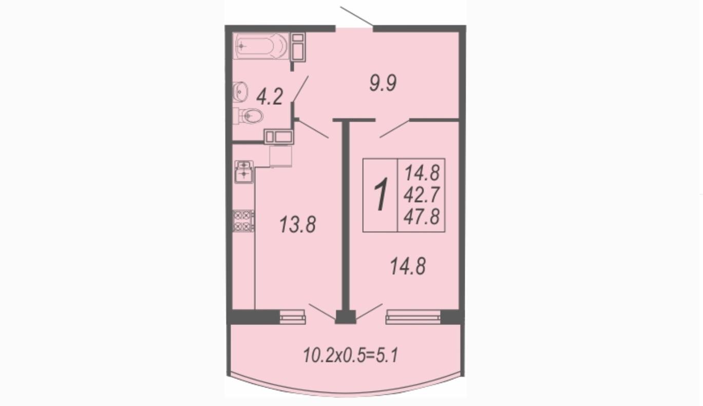 Продается однокомнатная новостройка, 48 кв.м., 17/17 эт