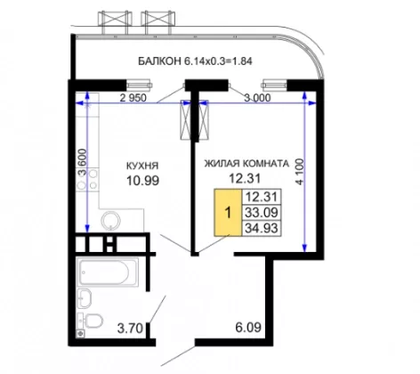 Продается однокомнатная новостройка, 35 кв.м., 20/24 эт