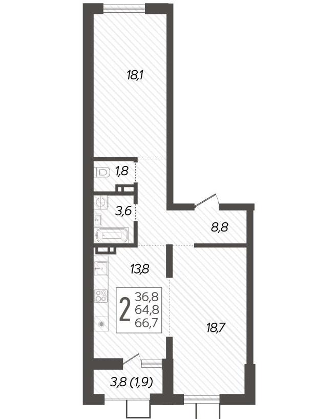 Продается 2-х комн. новостройка, 67.7 кв.м., 11/19 эт