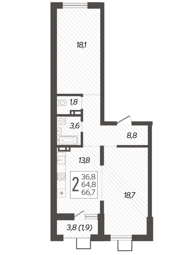 Продается 2-х комн. новостройка, 67.7 кв.м., 16/19 эт