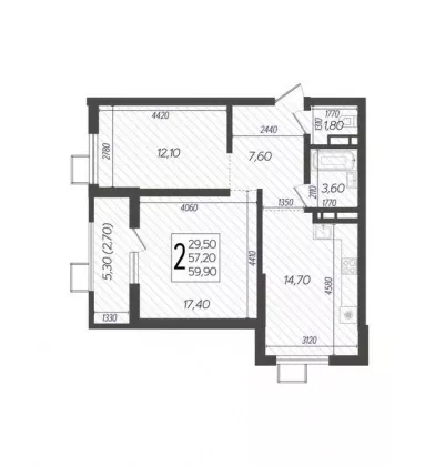 Продается 2-х комн. новостройка, 59.7 кв.м., 10/19 эт