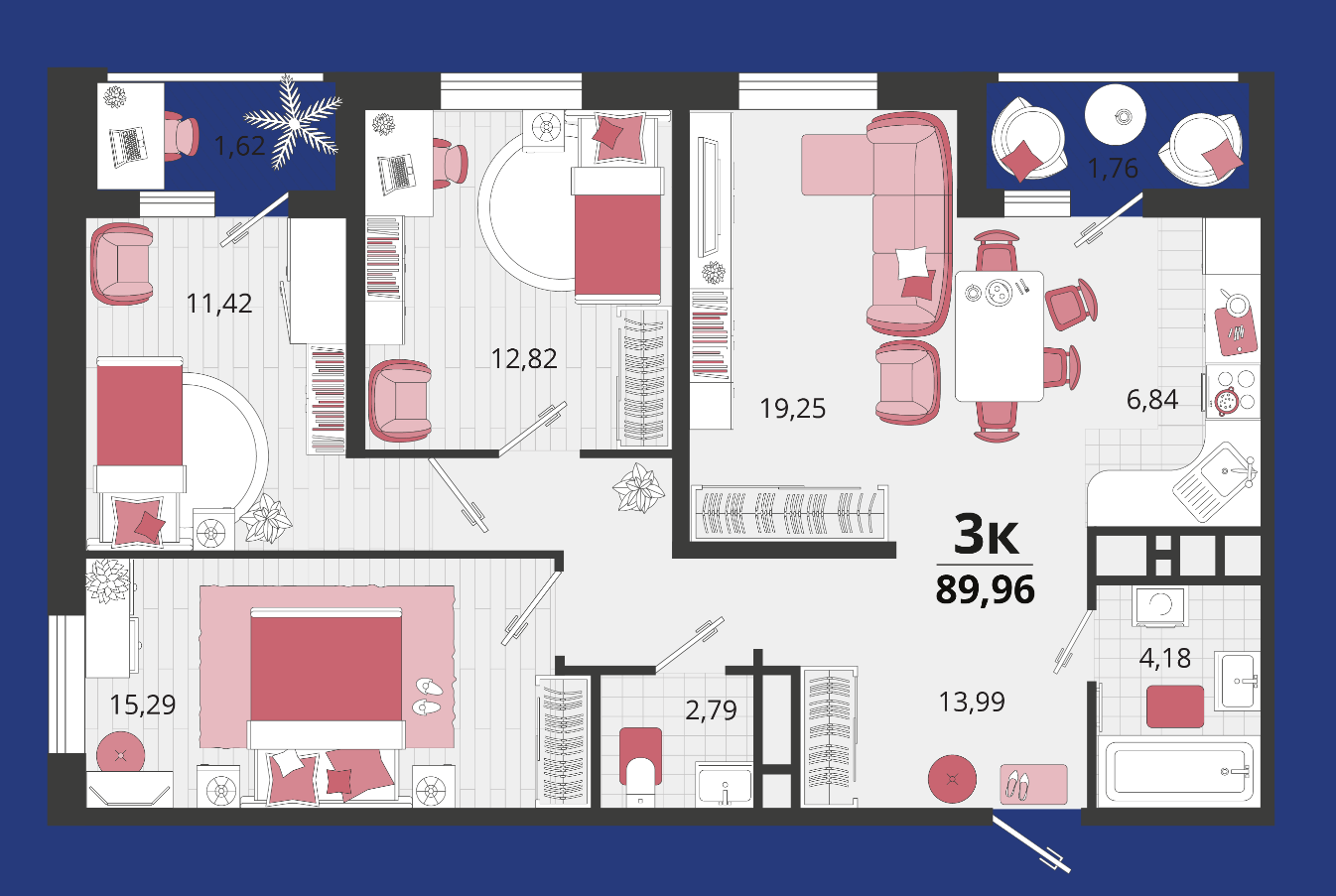 Продается 3-х комн. новостройка, 89.96 кв.м., 10/16 эт