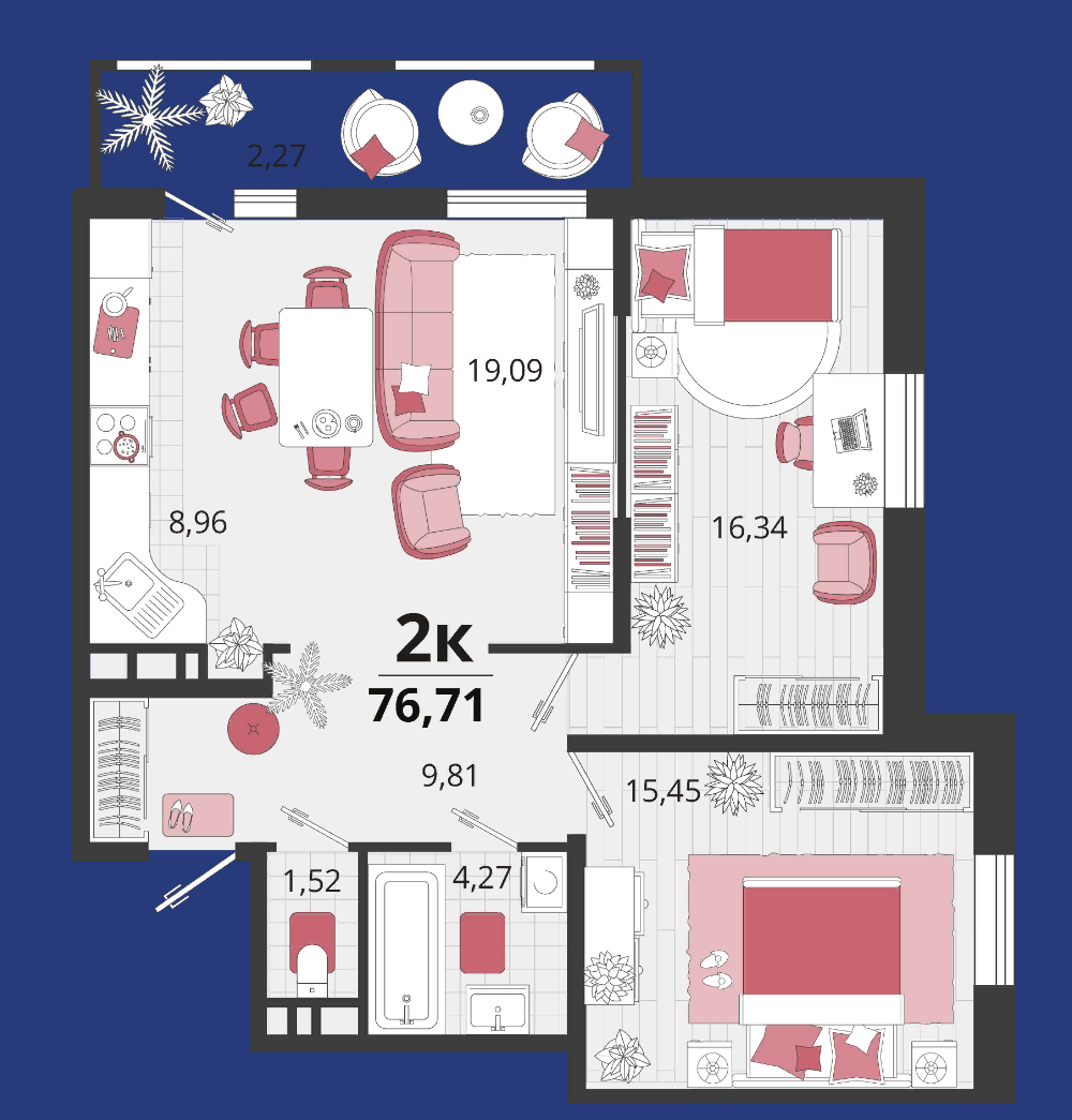 Продается 2-х комн. новостройка, 77 кв.м., 8/9 эт