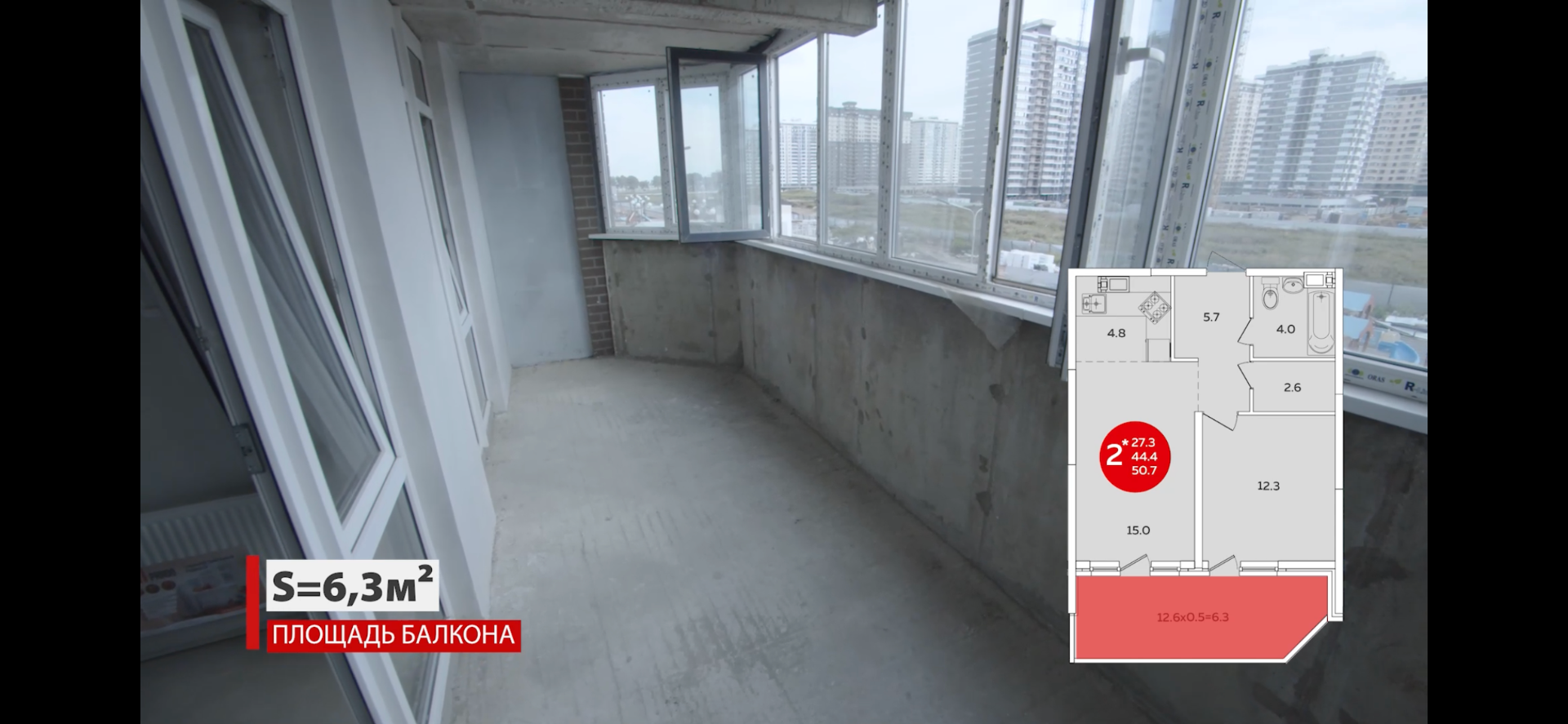 - Большие балконы с витражным остеклением